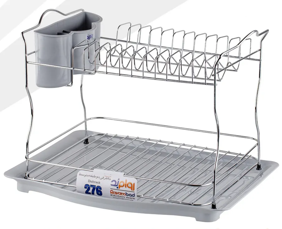 جاظرفی متوسط دو طبقه 276 آبکاری نیکل کروم روامبد با طراحی فلزی براق و مقاوم، فضای کافی برای ظروف و سینی تخلیه آب را فراهم میکند. این مدل با ساختار دوطبقه و پوشش ضدزنگ، گزینهای زیبا و کاربردی برای آشپزخانههای مدرن است.