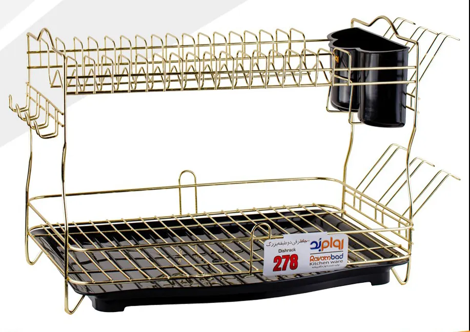 جاظرفی دوطبقه بزرگ 278 آبکاری طلایی برند روامبد ترکیبی از طراحی لوکس، استحکام بالا و کاربردی بینقص است. این جاظرفی فلزی با آبکاری طلایی براق، جلوهای مدرن و چشمنواز به آشپزخانه شما میبخشد و با طراحی دوطبقه، فضای کافی برای ظروف روزمره فراهم میکند.