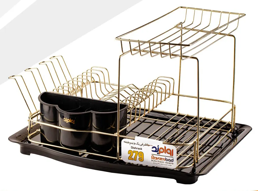 اگر به دنبال جاظرفی یک و نیم طبقه طلایی با طراحی لوکس و مقاومت بالا هستید، جاظرفی 279 روامبد گزینهای ایدهآل است. این مدل با آبکاری طلایی ضدزنگ و سینی تخلیه آب، انتخابی بادوام و زیبا برای آشپزخانههای مدرن محسوب میشود.