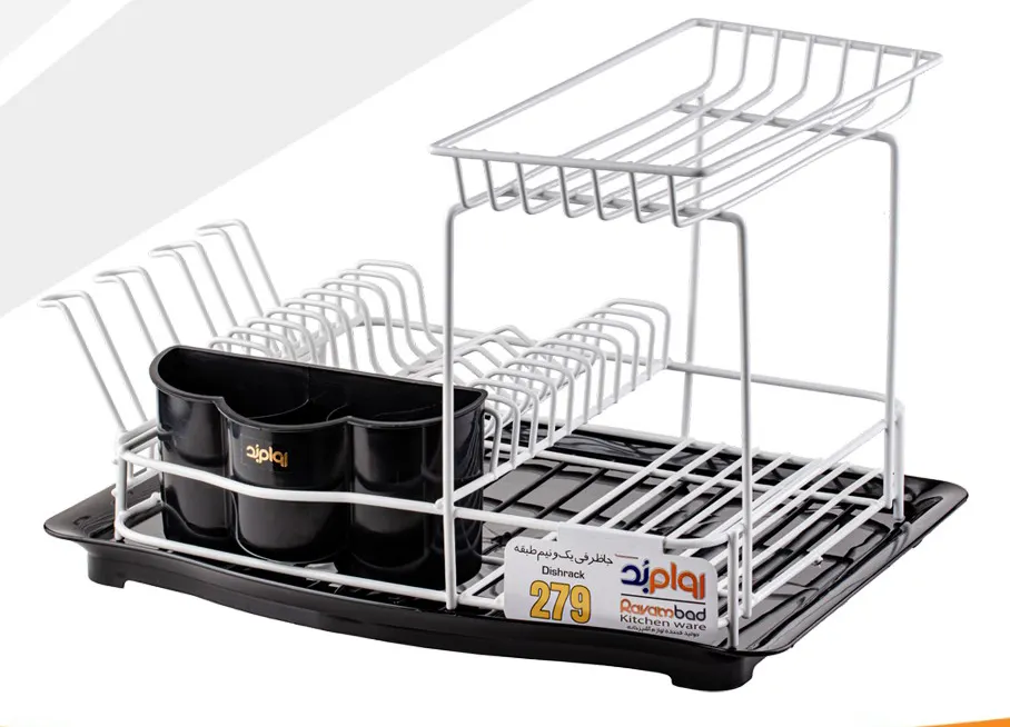 جاظرفی یک و نیم طبقه روامبد مدل 279 با ظاهر ساده و عملکرد کاربردی، بهترین گزینه برای استفاده روزمره و نظمدهی به ظروف در آشپزخانههای کوچک است.