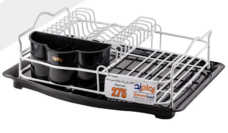 جاظرفی متوسط یک طبقه 275 با روکش پلاستیک روامبد با طراحی زیبا و روکش مقاوم، از زنگزدگی جلوگیری میکند و دوام بالایی دارد. این جاظرفی دارای سینی تخلیه آب و جای قاشق و چنگال تفکیکشده است و برای نظمدهی ظروف در آشپزخانههای کوچک یا مدرن بسیار کاربردی است.