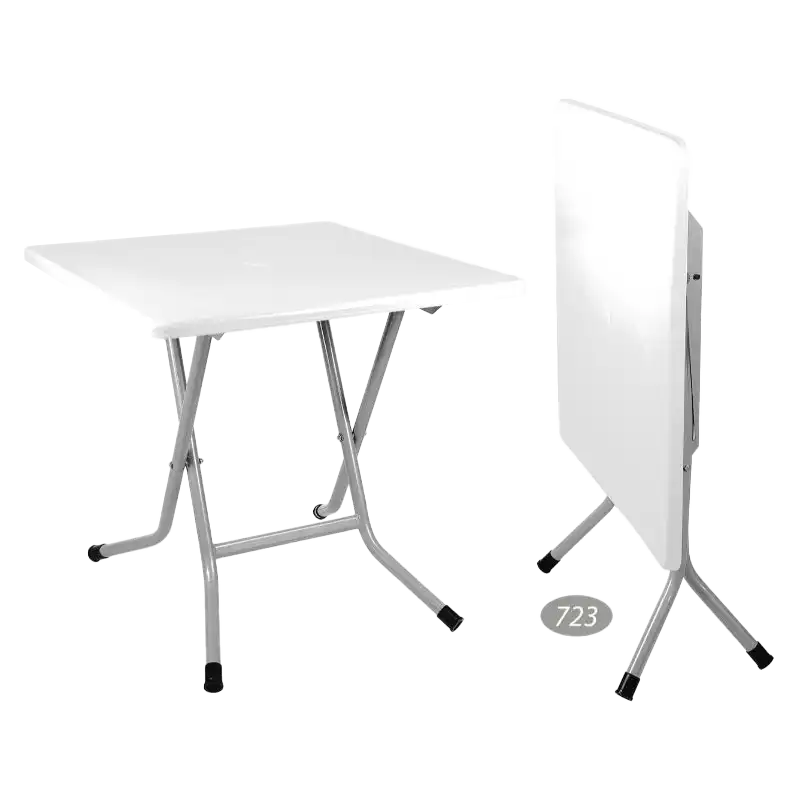 میز ۷۲۳ ناصر پلاستیک یکی از پرکاربردترین مدلهای تاشو این برند است که با طراحی مربعی و پایههای فلزی ضدزنگ، برای استفاده در محیطهای مختلف خانگی و بیرونی بسیار مناسب است. این میز با قابلیت تا شدن، بهراحتی جابجا میشود و فضای کمی اشغال میکند.